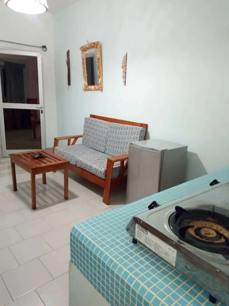 L’hôtel propose des studios ventilés et climatisés, adaptés aux séjours individuels, en couple ou en famille, avec des formules en demi-pension ou pension complète (petit déjeuner, déjeuner et dîner inclus).